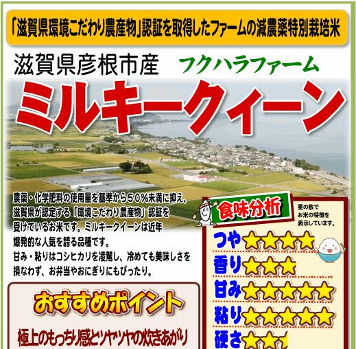 関西の中でも特に米処として有名な滋賀県のミルキークイーンは近年爆発的な人気を誇る品種です。